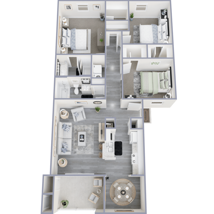 Plans, prices, and specifications subject to change without notice. Finish may vary depending on the exact unit/floor plan. 3D floor plans are artistic representations.